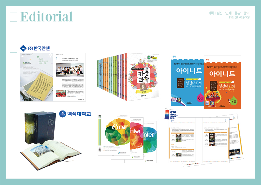 - 기타 : 잡지, 브로셔, 사보, 각종 도서 & 북커버, 교재(학습지), 교회디자인 등 다수.